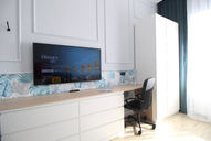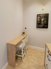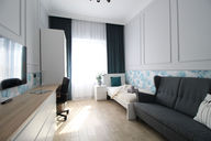 The newly-renovated apartment has a very rare in Warsaw high ceiling (340 cm) making it a very specious place.